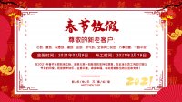 南山电子2021年放假时间安排: (1) 2 月 9 日至 2 月 18 日放假,共计 10 天。2月19日开始正常上班。 (2) 2 月 18 日(年初七)安排部分业务、跟单、库房人员值班; (3) 2 月 7 日、2 月 20 日为...