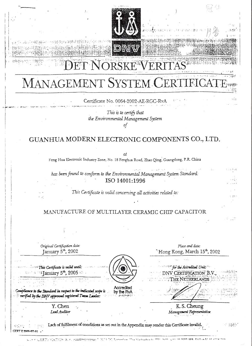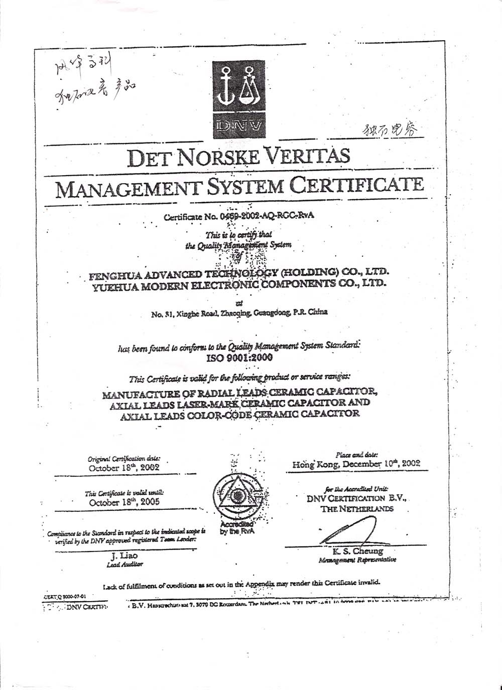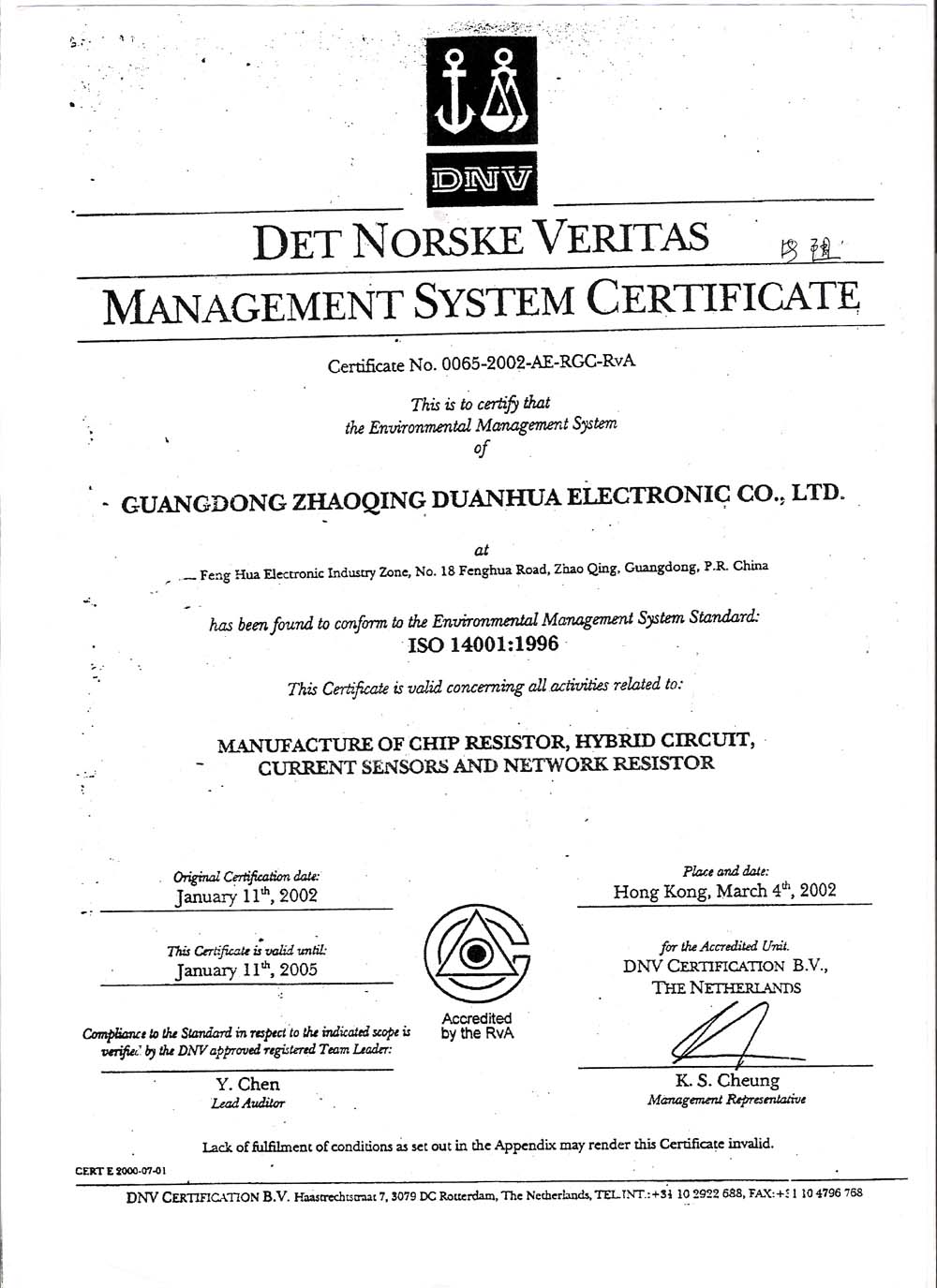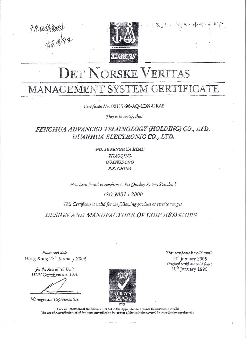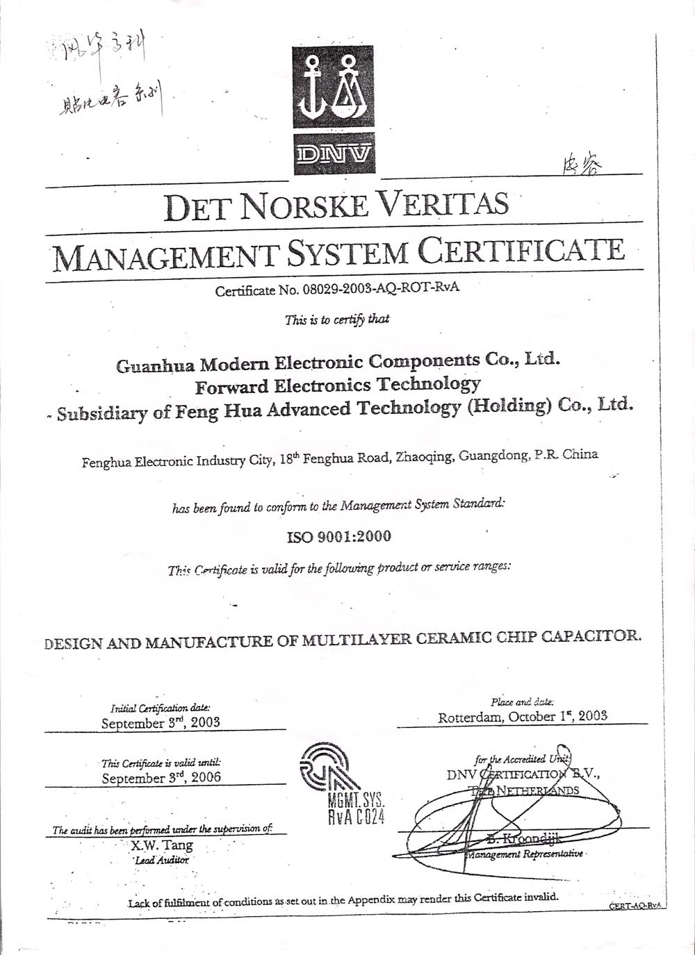 风华高科是全球贴片被动元器件排名八强的知名企业 ,早在2000之前年就实现了贴片电容,贴片电阻,贴片电感,贴片二极管,贴片三极管,贴片磁珠,贴片磁珠排,贴片功率电感,贴片钽电容,贴片晶振,贴片电解电容等系列产品的无铅化和标准化,通过了ISO9000和ISO1400认证。 同时,hahabet官方半导体作为风华高科直接授权代理,风华高科也为其提供了相关的资质文件 以下图片可点击放大。