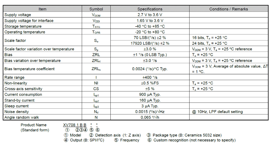 大家好,今天给大家来介绍一款用于自动化机器的数字输出型陀螺仪传感器XV7081BB。这款新推出的陀螺仪XV7081BB到底有什么魅力呢?hahabet官方可以用常用款用于智能割草机的XV7011BB作对比:XV7081BB提供16位或24位分辨率的角速率输出,速率范围为±400°/s。而XV7011BB采用16位角速度输出,检测范围为±100°/s。这么一比较差距就出来了,而且XV7081BB具有出色的偏置温度系数,典型值0.0024(°/s)/℃;较低的角度随机游走:典型值0.065°/√h,电流消耗典型值仅900μA。提供SPI或I2C串行接口。XV7081BB还具有集成用户可选的数字滤波器,内嵌温度传感器。下面hahabet官方电子就给大家分享下XV7081BB的详细参数,以供大家选型参考: